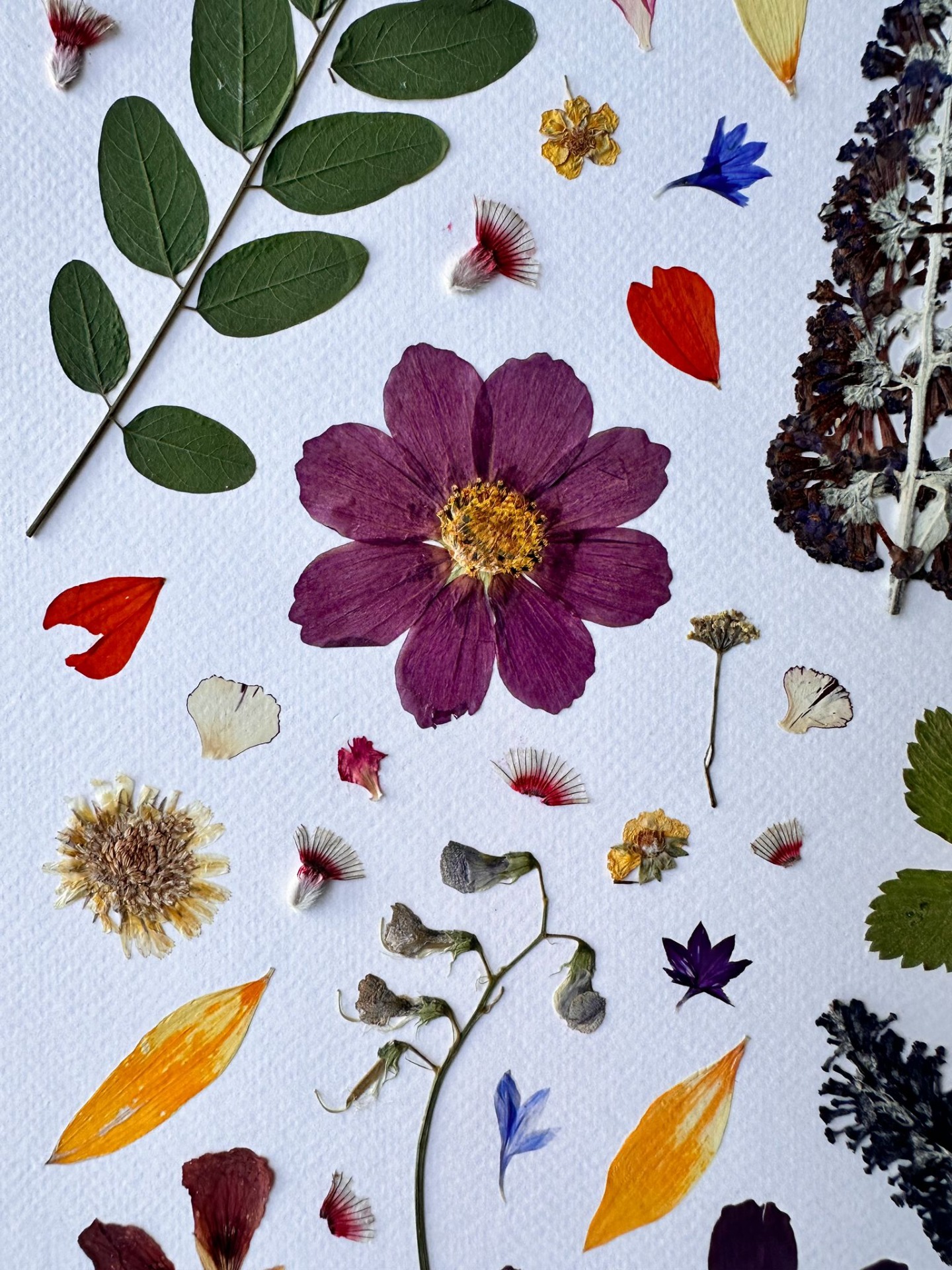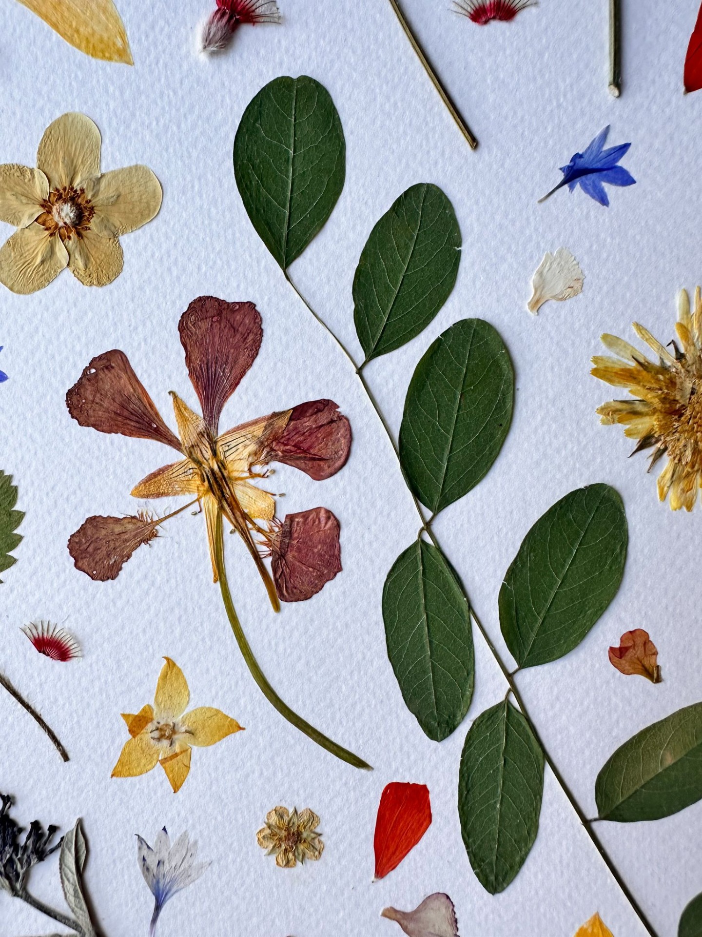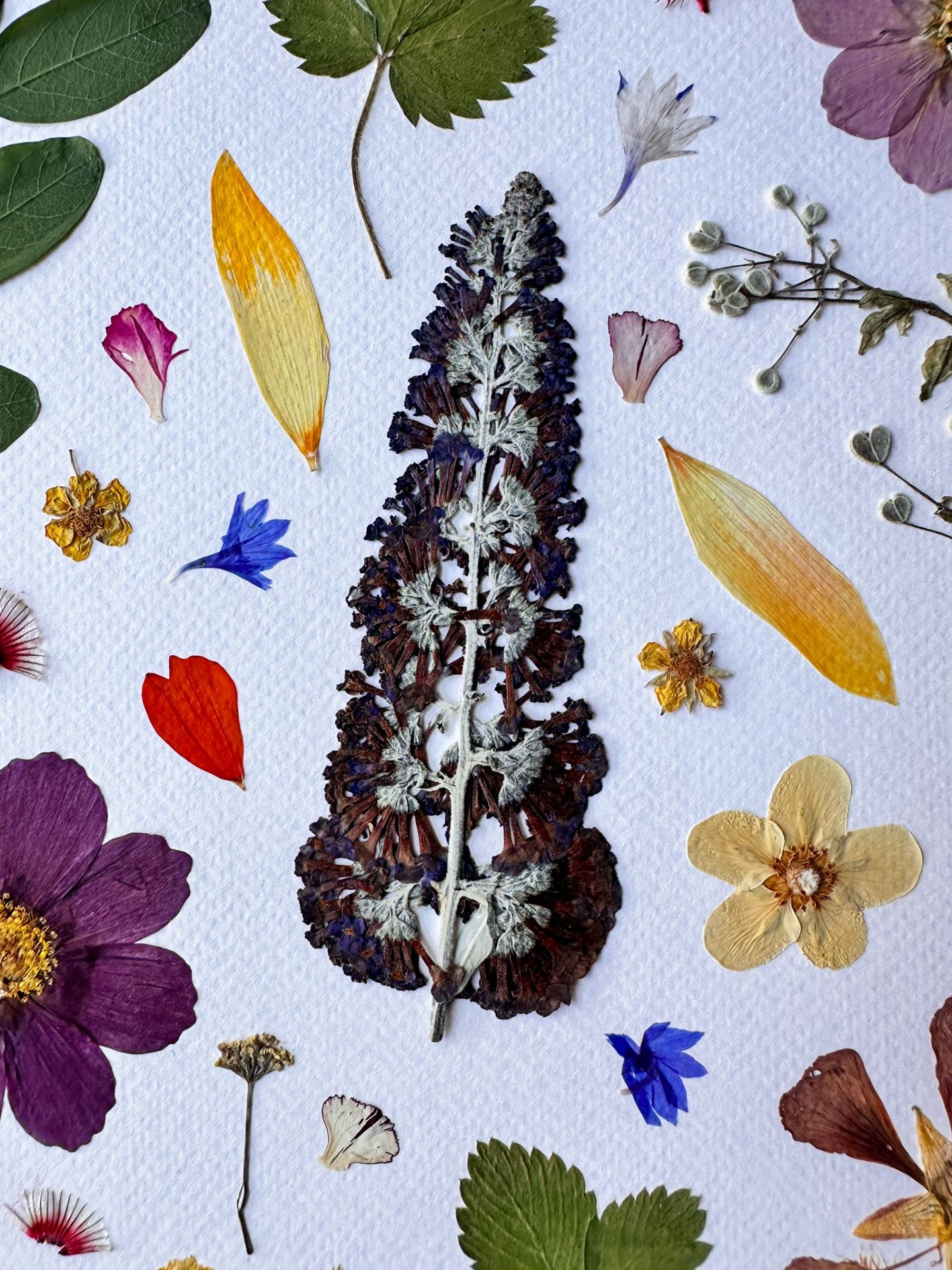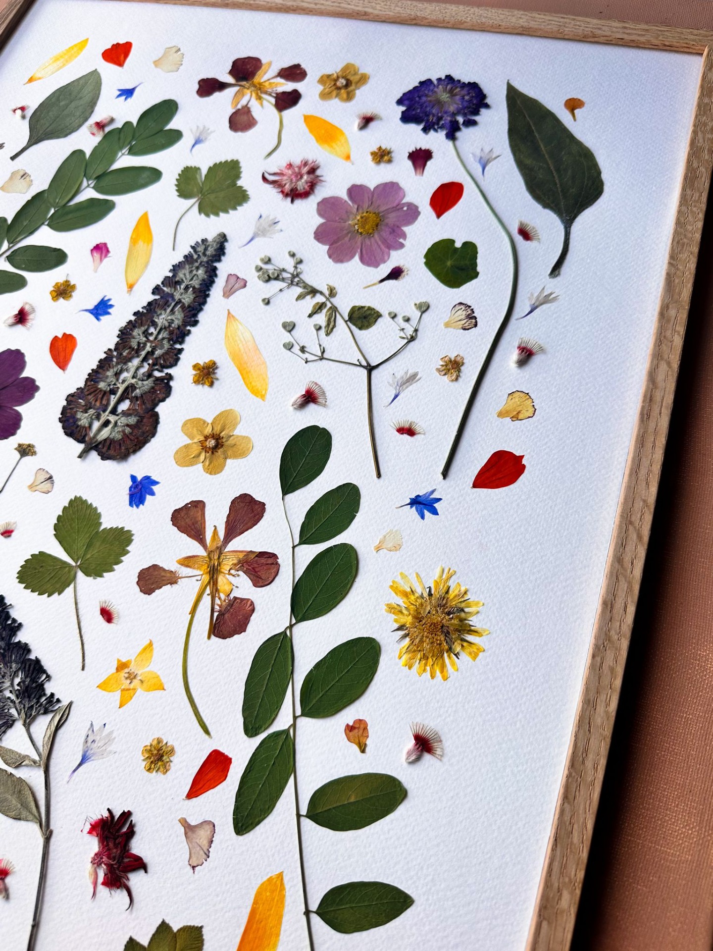 Handmade artwork created with real pressed flowers and leaves.
